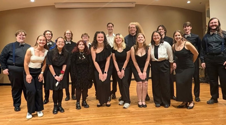 Chromatic Convergence is an all-gender contemporary a cappella group that provides an engaging experience through unique arrangements of today s popular music. including pop, jazz, R&B, rock, hip-hop, soul, gospel, and musical theater. The group is conducted by Dario Johnson, who is also credited with a number of the group s musical arrangements. Members: Lofn Young, Jo Basile, Karter Ruud, Claire Yackley, Nao Hartwig, Ivan Vielma, Truesten Tautolo, Kevin Schoenfeld, Noah Rulison, Brandon Park |